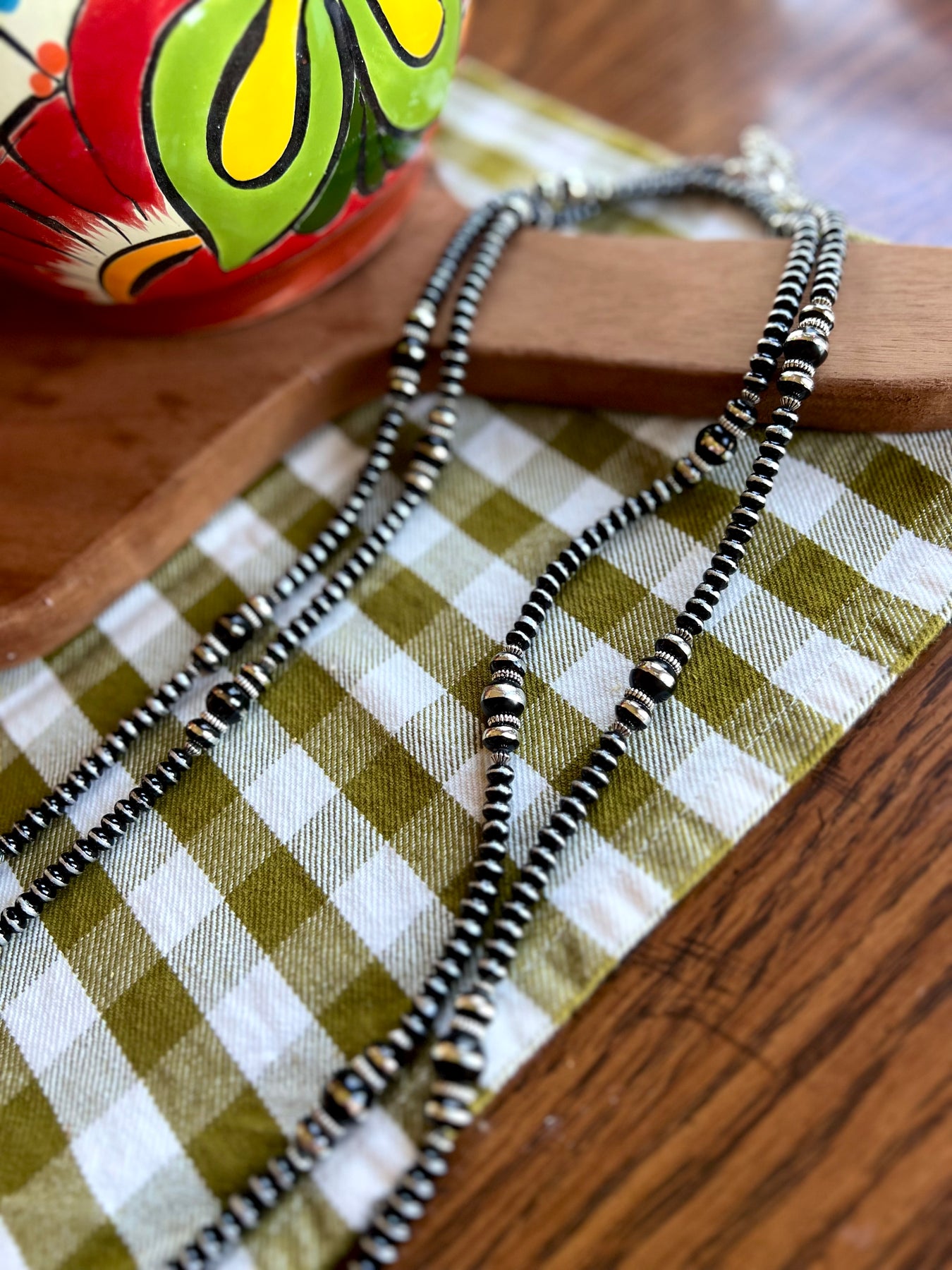 Black and Silver Rondell Beaded Necklace
