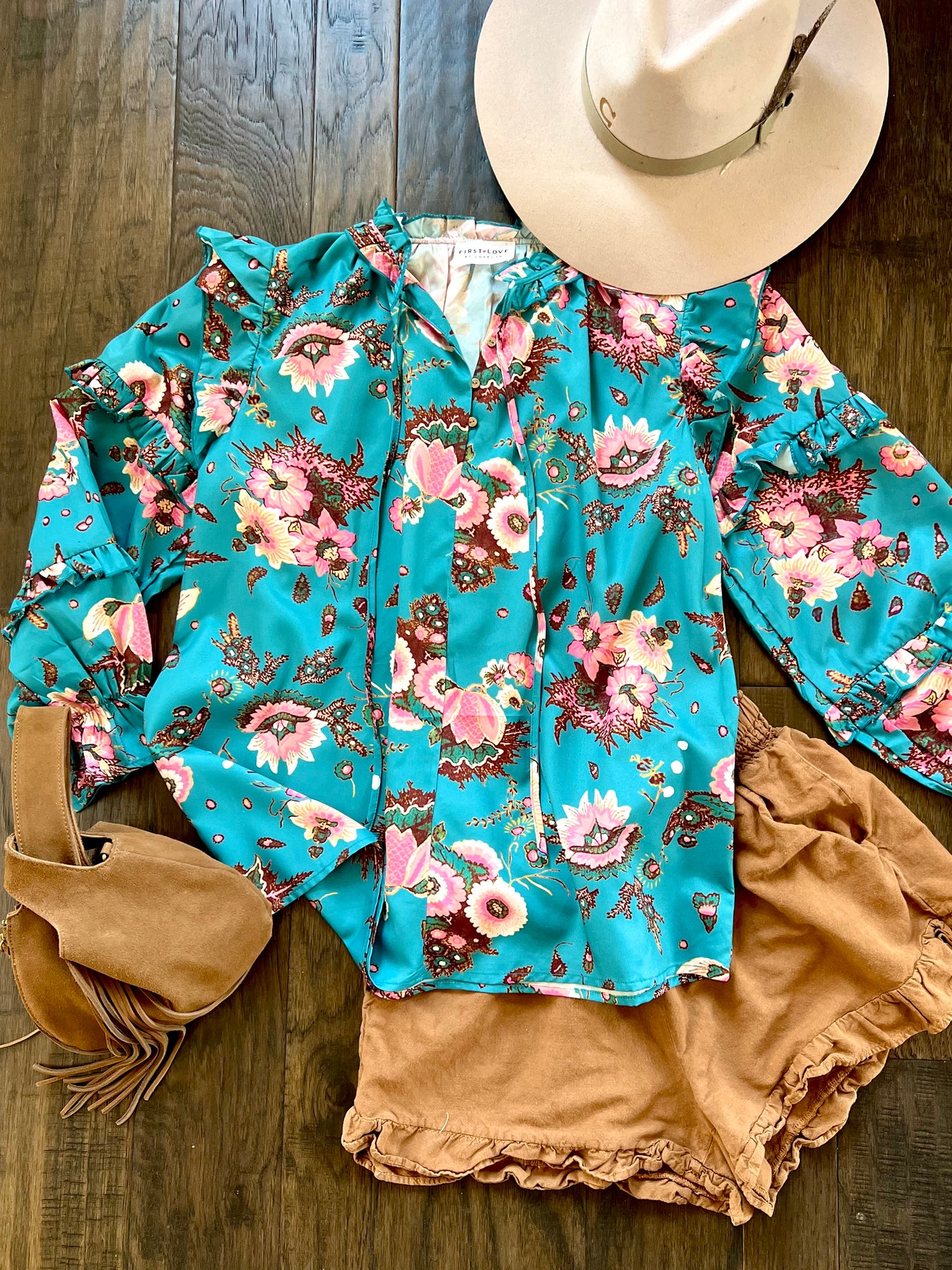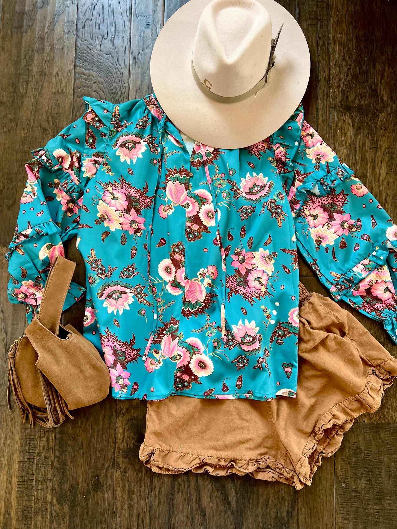 Teal Frill Ruffle Top
