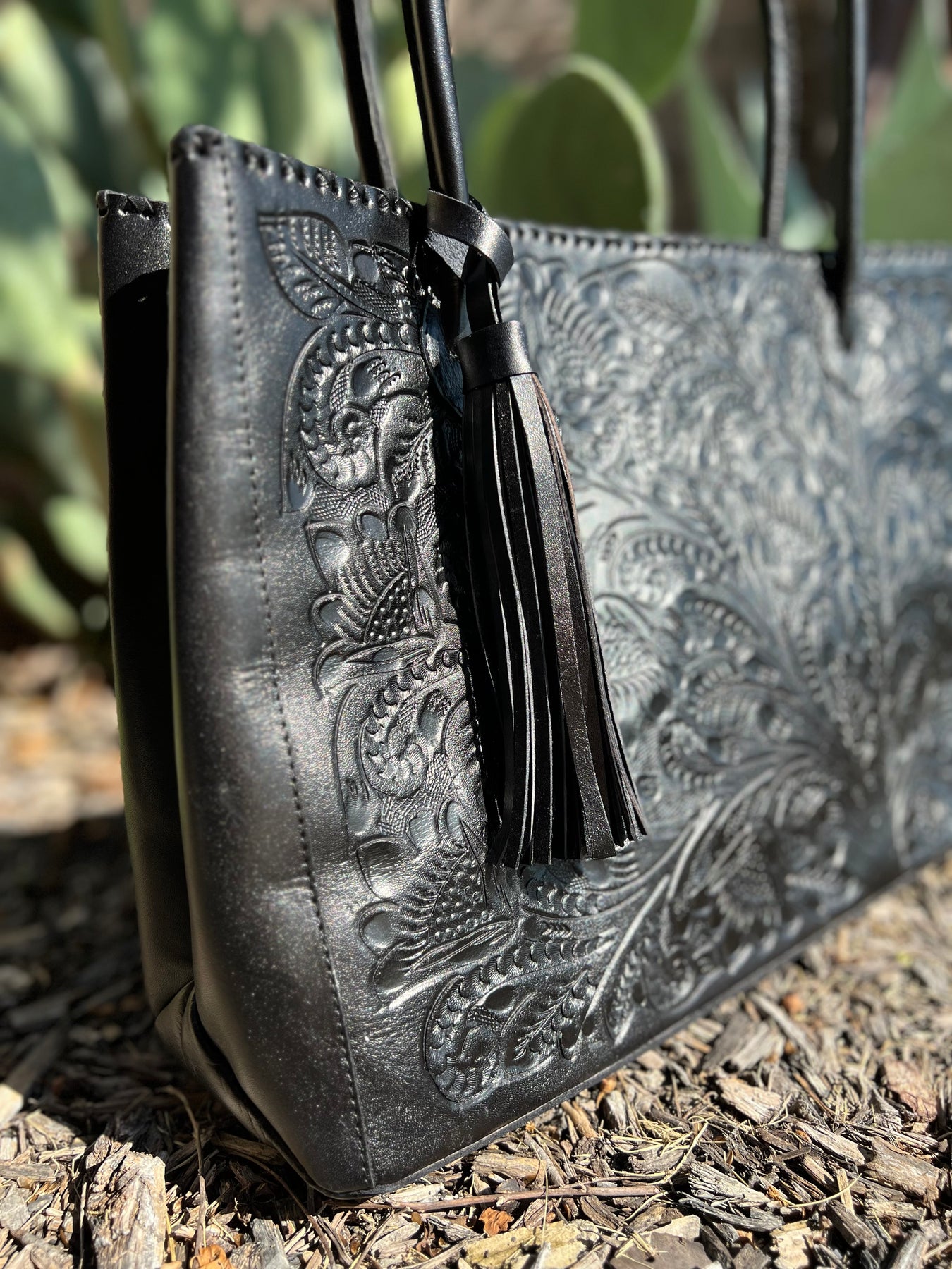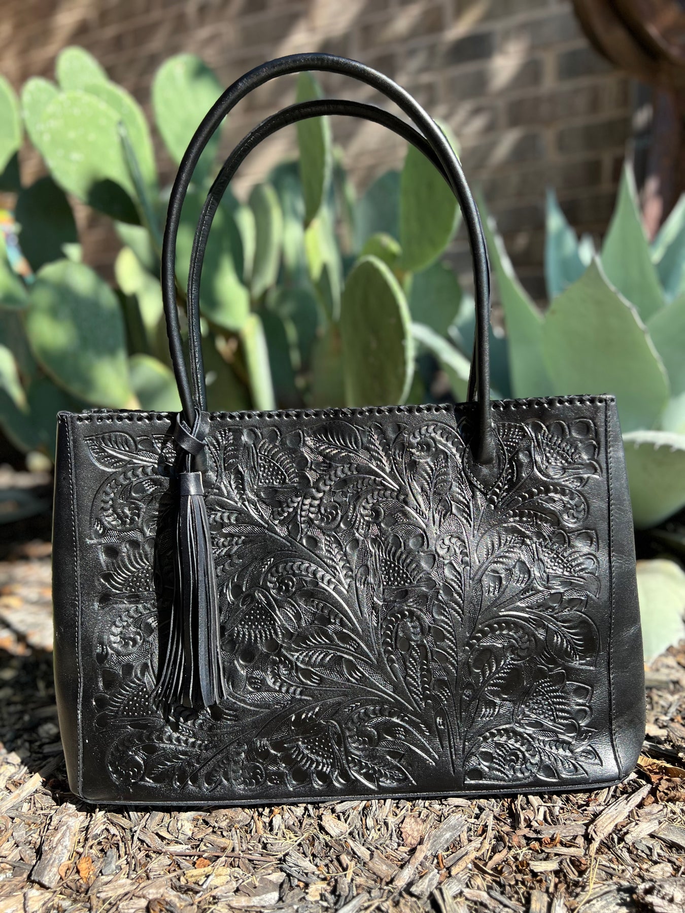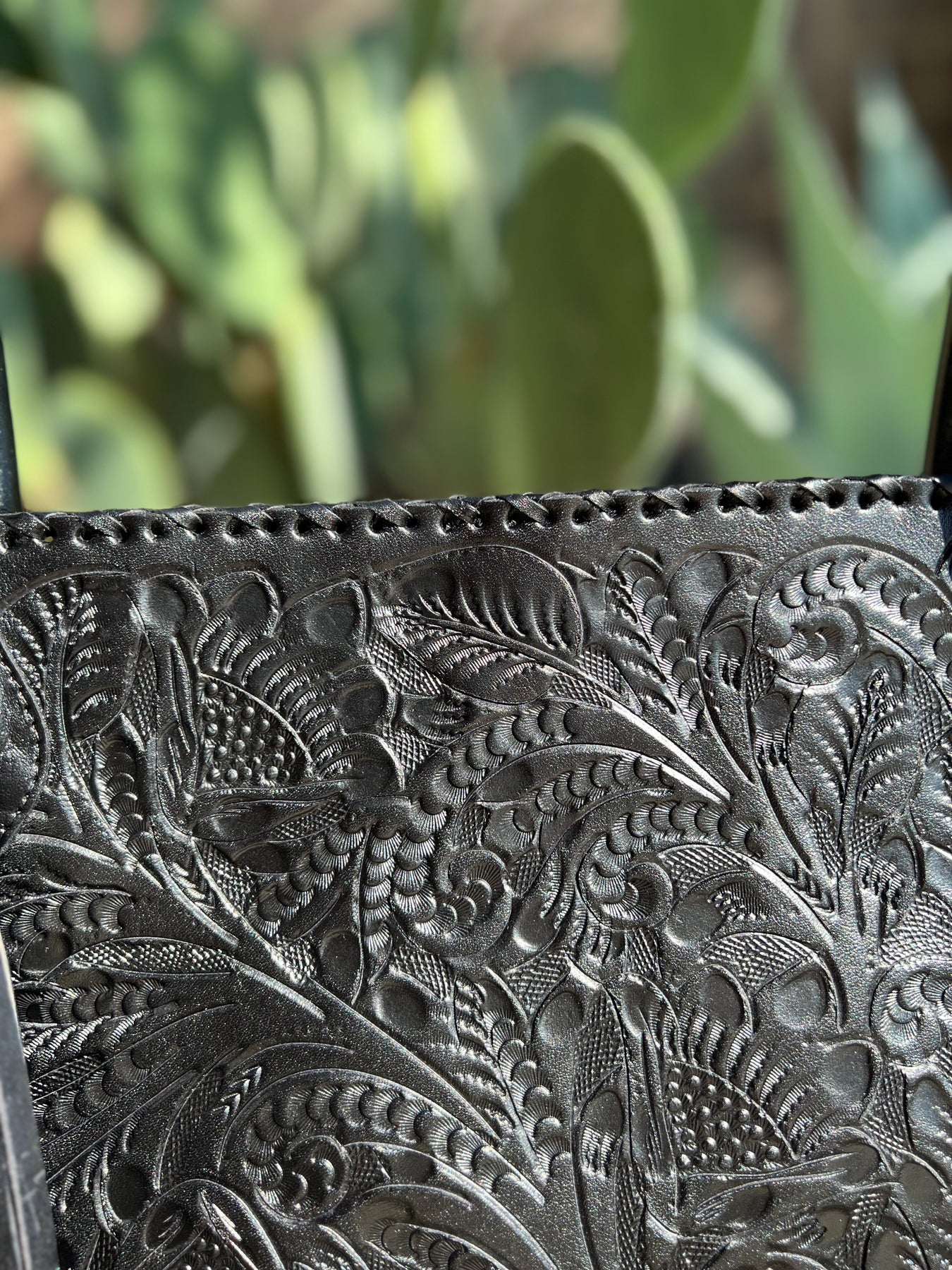 Combining hand-tooled with smooth leather on front and full tooled leather on back.
