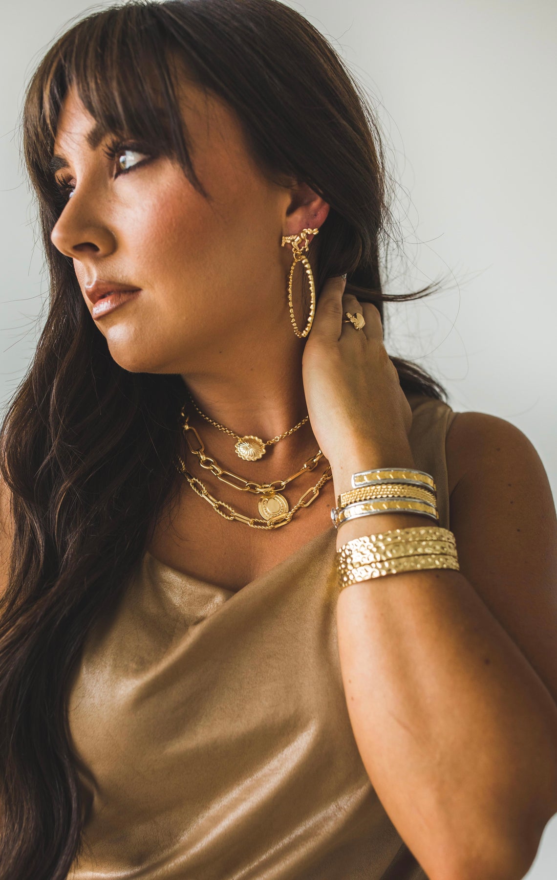 • 2.5" 18K Gold Plated Dangle Hoop Earrings on Bucking Horse Posts