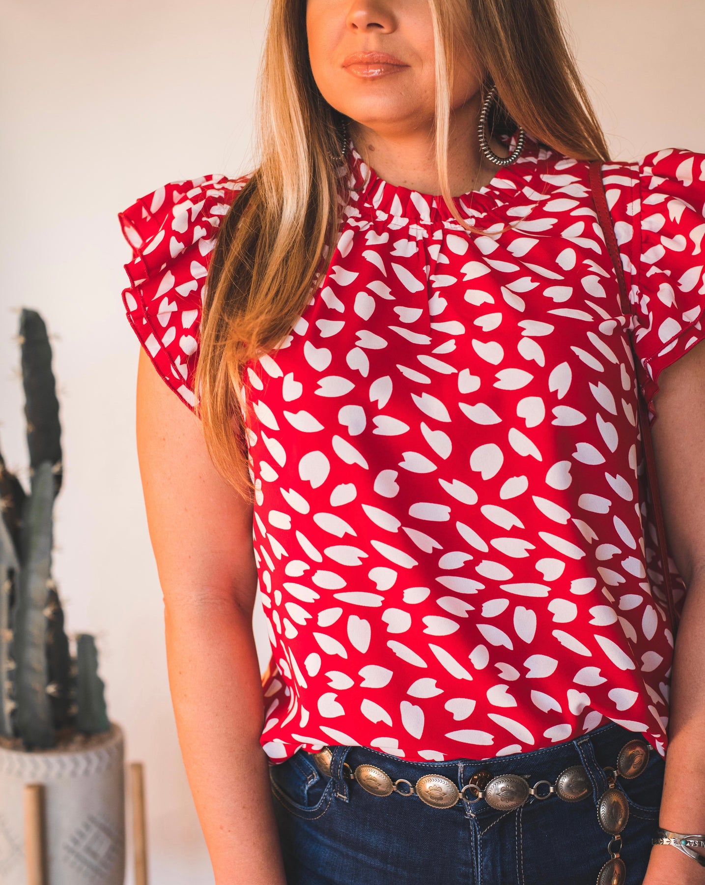 Ruby red flutter sleeve top